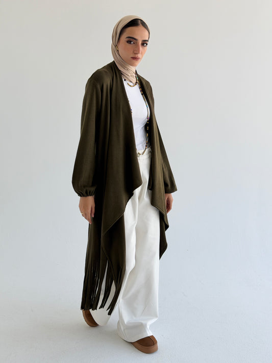 Knit Fringes Cardigan -Olive