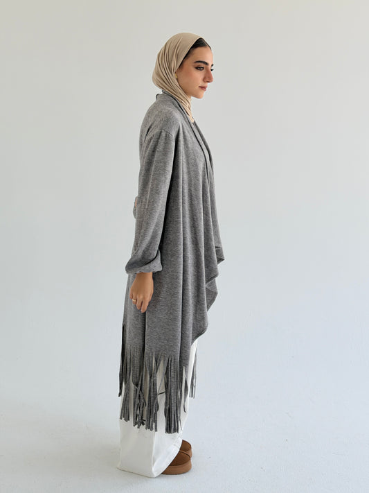 Knit Fringes Cardigan - Gray